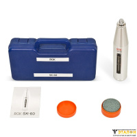 Благодаря несложной конструкции и простоте в управлении, прибор будет полезен как инструмент динамического контроля качества при строительстве. Благодаря металлическому корпусу и деталям, RGK SK-60 надёжно защищён от строительной пыли и попадания влаги. В комплект прибора входит специальный кейс для хранения и переноски, а также наждачный камень для подготовки поверхности.