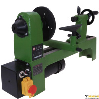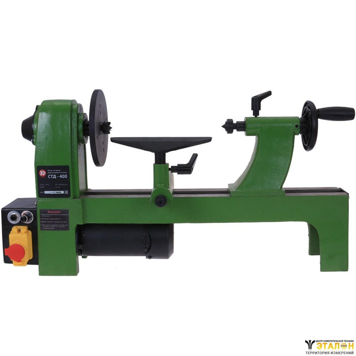 Токарный деревообрабатывающий станок «Калибр СТД-400» с электронной регулировкой скорости предназначен для обработки деталей из древесины с поверхностями, имеющими форму тел вращения. Вращательный момент с якоря двигателя передаётся ремённой передачей на шпиндель станка. Скорость двигателя регулируется в пределах от 500 до 3500 об/мин поворотом рукоятки потенциометра: по часовой стрелке – увеличение, против часовой стрелке – уменьшение. Быстрозажимной фиксатор суппорта подручника и стопора хода задней бабки из выскопрочного пластика с металлическими втулками.