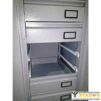 Металлический шкаф с 30 выдвижными ящиками ESD. Служит для хранения инструмента, кабелей, запчастей или архивов. Шкаф имеет 30 металлических ящиков на роликовых направляющих. Каждый ящик имеет внутренние габариты 314 х 457 х 73 мм. Поставляется в собранном виде. Каждый ящик съемный с металлическим держателем этикетки, нагрузка до 15 кг. Паспорт и инструкция на русском языке. Двери шкафа 30ЯВ (ral 7035 ESD) - оснащены замком повышенной секретности (ригельная система). Покрытие - полимерное порошковое серого цвета (RAL 7035 ESD). Габариты шкафа: 800 х 500 х 1860 мм. Масса 125 кг.