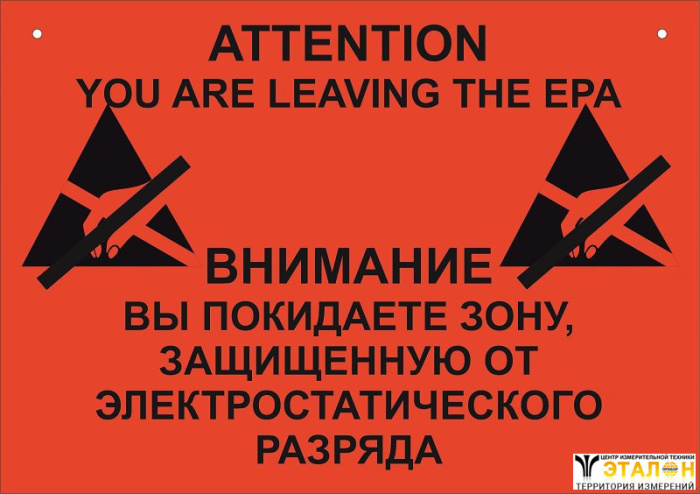 1ая сторона: ATTENTION! ESD PROTECTED AREA (ВНИМАНИЕ! ЗОНА ЗАЩИЩЕННАЯ ОТ СТАТИЧЕСКОГО РАЗРЯДА) на желтом прямоугольнике формата А-5 для размещения на входе в EPA зону.