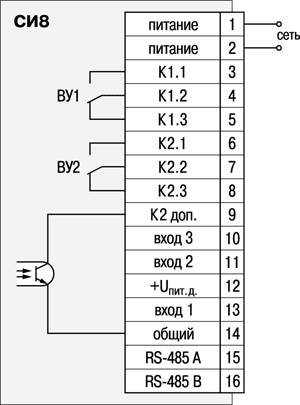 Схема подключения прибора СИ8 с релейным выходом (выход Р)