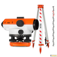 Стандартная комплектация: оптический нивелир RGK N-24, нитяной отвес, юстировочный набор, руководство по эксплуатации, транспортировочный кейс.