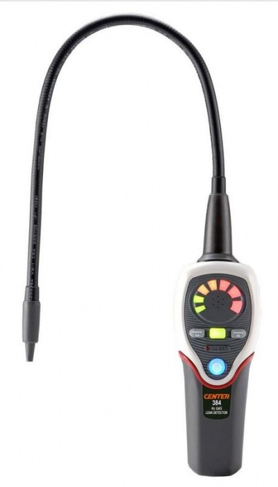 Center 384 — это портативный электронный прибор для быстрого поиска утечки газов (водородно-азотной смеси, используемой в системах кондиционирования). Он укомплектован практичной трехцветной шкалой индикации на 7 сегментов. Кроме этого, конструкцией предусмотрена звуковая сигнализация.