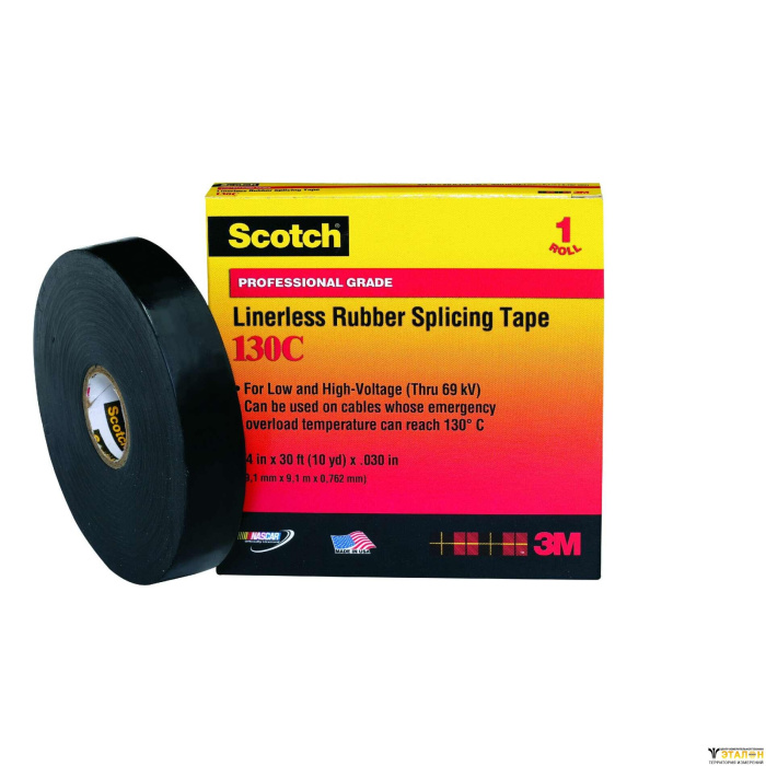 Профессиональная самовулканизирующаяся лента 3M Scotch 130C на основе этиленпропиленовой резины размером 25 мм х 9,1 м с клеевым слоем. Лента не распространяет горение, поэтому используется для восстановления наружной оболочки при оперативном ремонте кабеля. Обладает повышенной теплопроводностью и работоспособностью при температуре до 130°C. Устойчива к растворителям и атмосферным воздействиям, совместима со всеми типами оболочки кабеля. Ленту наматывают с предельно сильным натяжением.