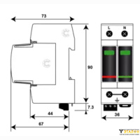 | Индикатор отключения | 1 механический индикатор на полюс | |