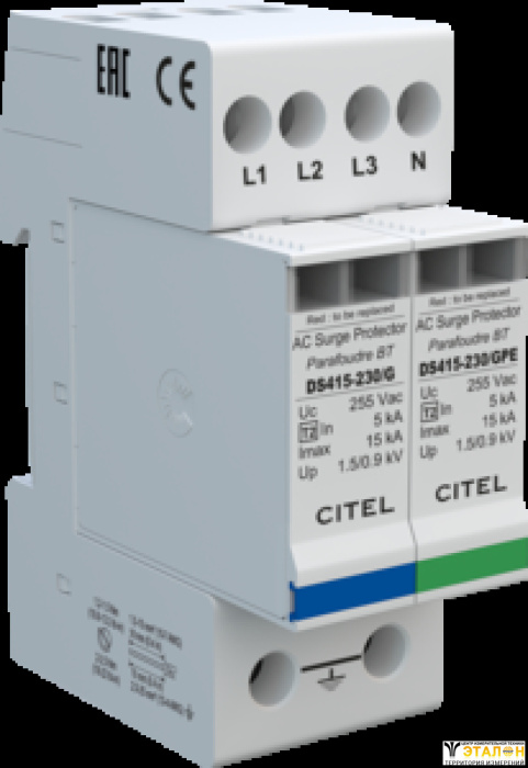 УЗИП на основе высокоэнергетического варистора с терморазмыкателем и индикатором неисправности в соответствии со стандартами. DS415 предназначен для монтажа на DIN рейку, устройство состоит из сменных модулей и фиксированной базы, для быстрого и легкого монтажа.