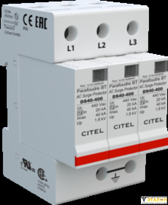 | Макс. ток разряда max. withstand @ 8/20 µs by pole | 40 kA |