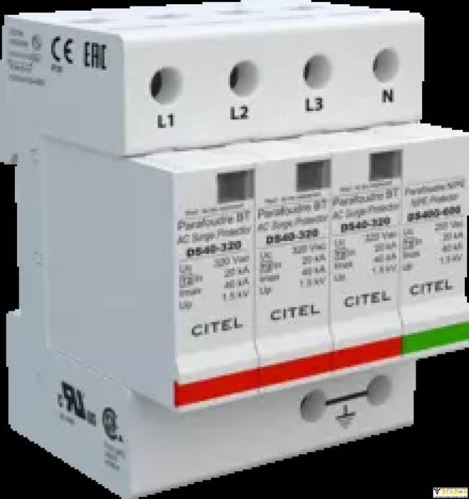 Используется в качестве первичной защиты однофазной или 3-х фазной сети в главном электрощите. В основу УЗИП заложен высокоэнергетический варистор с терморазмыкателем и индикатором состояния, чтобы соответствовать стандартам. Многополюсные УЗИП DS40 предназначены для защиты однофазной, трёхфазной или трёхфазной+нейтраль сети переменного тока. Они иногда устанавливаются вместе с N/PE УЗИП.