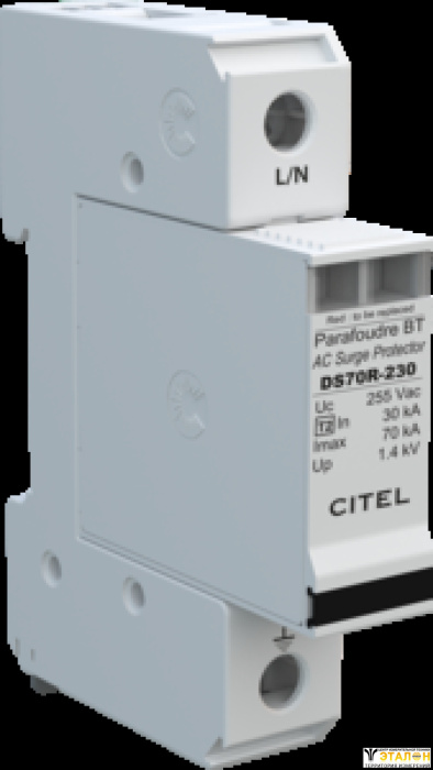 УЗИП DS70R тип 2 для сети переменного тока используется в качестве первичной защиты одно или трёхфазной сети в главном электрическом шкафу. Общий режим защиты. Защита однофазных, 3-фазных и 3-фазных + Нейтраль.