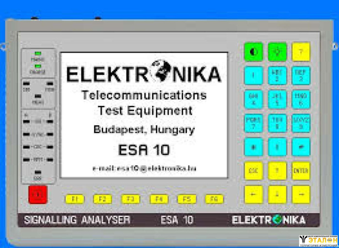 Elektronika ESA 10 - базовый блок анализатора сигнализации 2048 кбит/с высокоомным входом. В соответствии с выбранной опцией (заказывается отдельно), он позволяет провести анализ сигнализации цифровых телефонных станций, сетей и их взаимодействия. Прибор ESA 10 выполняет тестирование стыков согласно рекомендациям МСЭ-T G.703 / G.704 / G.706 / I.431 и ETSI ETS 300 011.
