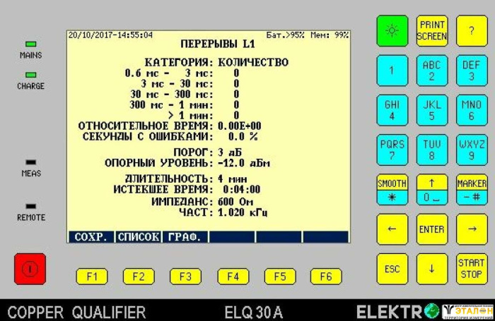 Elektronika SW 409-530-000 - опция измерения микро перерывов для ELQ 30. Она позволяет определить микро перерывы в соответствии с рек. МСЭ-Т O.62 и предоставить подробную информацию о числе и относительной длительности перерывов.