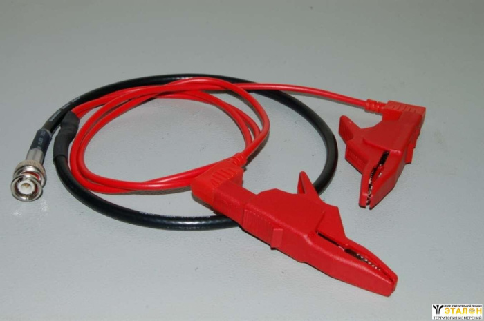 ЭРСТЕД КС-1.5К25 - кабель соединительный 1,5 м, 75 Ом, оконцованный BNC.M – изолированный зажим типа «крокодил» с шириной захвата 25,4 мм.