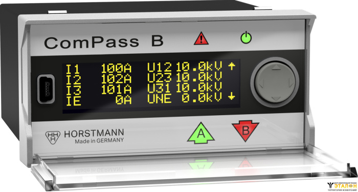 Модель ComPass B объединяет в одном устрои стве функции индикатора короткого замыкания и замыкания на землю с указанием направления на неисправность, и предназначена для использования на распределительных электрических сетях среднего напряжения. Информация о напряжении берется со встроеннои системы обнаружения напряжения Wega 1.2 C, Wega 2.2 C или Wega 1.2 C vario. Дополнительно информацию о напряжении можно получить от интерфеи са HR или с емкостных опорных изоляторов.