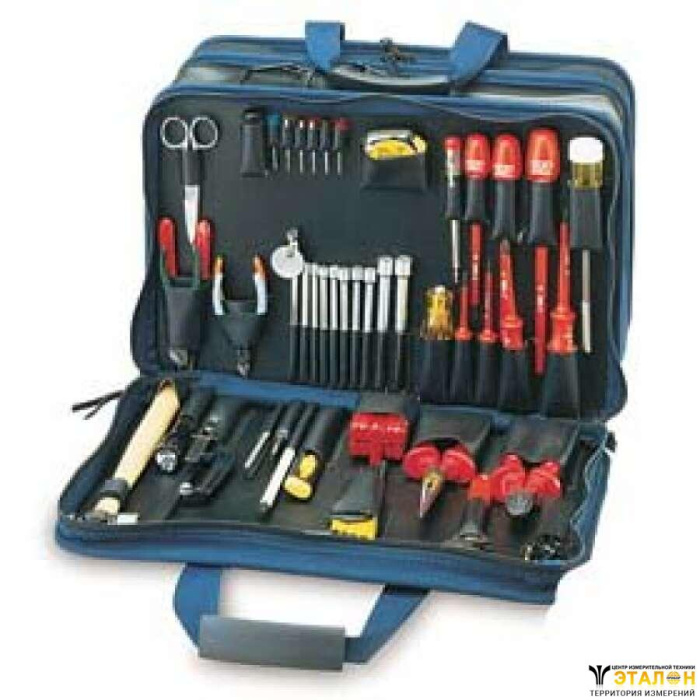 Jensen JTK-67C (JTK-13414) - универсальный набор инструмента для обслуживания электрического и электро-механического оборудования. Поставляется в очень прочной сумке из ткани Cordura*. В сумке есть два внешних отсека (46 х 30 х 6 см) для инструментов и дополнительного оборудования и один центральный отсек (46 х 30 х 10 см) с мягким карманом для ноутбука и документов. В комплект набора входит инструмент для работ под напряжение до 1000В. Вес набора: 9.07 кг. Габариты: 43 х 28 х 20 см.
