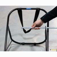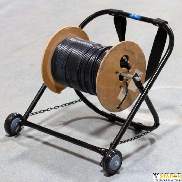 Кабельная тележка изготовлена из трубчатой стали диаметром 7/8 дюйма (22 мм), имеет колеса и прочно закрепленный ремень для большей портативности.