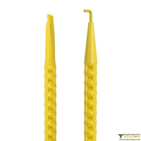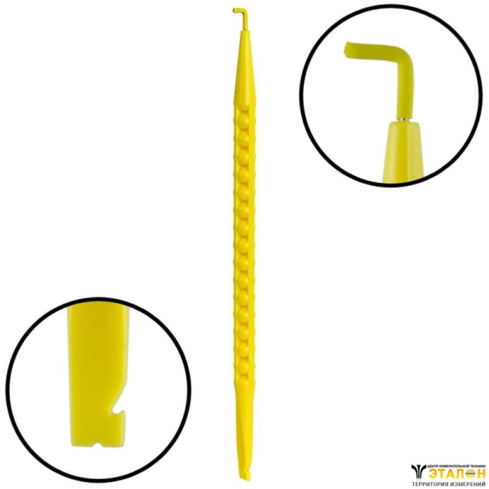 Jonard JIC-22035 – щуп Probe Pic, желтый пластиковый диэлектрический. Один конец имеет крючок из проволоки в изоляции Г – образной формы, диаметром 1,6 мм. Другой конец сужен до 4,7 мм в ширину и 1,6 мм. в толщину и имеет небольшие выемки для захвата провода. Длина инструмента 17,7 см.