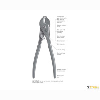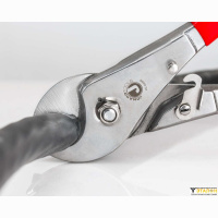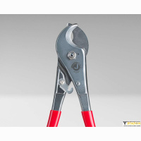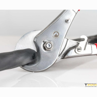 Конструкция с длинным плечом (рукоятками) для превосходной режущей способности. Изогнутые челюсти обеспечивают хорошее удерживание кабеля для более чистого и концентричного среза. Инструмент предназначен для резки алюминия и мягкой меди. Не для использования на стальных кабелях. Челюсти разрезают кабели емкостью до 100-пар проводников (24 AWG). Инструмент имеет пружину и замок для безопасности. Блокировка имеет уникальную функцию, при которой блокировка освобождается, сжимая ручки вместе. Изготовлен из хромованадиевой стали.