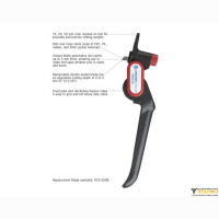 Разработан для резки и создания прорезей (окон) в кабельной изоляции или ПВХ трубах диаметром более 25 мм. Хорошо подходит для продольного и кругового реза жесткой изоляции при разделке силовых, связевых и оптоволоконных кабелей. Специальный храповик вмонтированный в рукоять, надежно зацепляясь зубцами за изоляцию и прокручиваясь, тянет за собой крепкий острый нож и разрезает материал. Более тонкая пятка и специальная форма лезвия, дает возможность врезаться в изоляцию или трубу не только с торца, но и в любой точке пролета. Это свойство будет очень полезно при создании ответвлений кабеля или пластикового кабельного канала.
