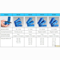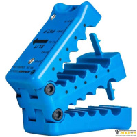 Стриппер MS-326 напоминает прищепку в которой предусмотрено 10 прецизионных пазов разного диаметра с режущими лезвиями внутри. Пять пазов предназначены для продольного реза изоляции кабеля, ещё пять - выполняют круговой надрез, позволяя удалить участок защитного покрытия с любого участка кабеля.