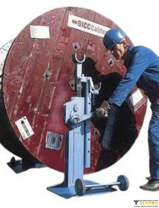 Через отверстие в центре кабельной катушки продевается специальная ось, с обеих сторон которой надеваются зажимы и фиксируются возле боковин барабана. На расстоянии 80-100 мм от зажимов с обеих сторон барабана устанавливаются кабельные домкраты. Для предотвращения несчастных случаев, устанавливать домкраты следует на ровной поверхности. Подъём кабельного барабана осуществляется посредством гидравлического подъёмного механизма.