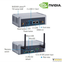 Промышленный компактный безвентиляторный компьютер AIE500-901-FL, NVIDIA® JETSON™ TX2 серии SoM, 8 Гб LPDDR4, 1866 MГц, 32 Гб eMMC, 1 x M.2 Key M 2280, 1 x Micro SD, 1 х HDMI 2.0, 2 х GbE LAN, 2 x USB 3.1, 1 x Micro USB, 2 х RS-232 (или 2 х CAN), 1 x Full-size PCI Express Mini (USB + PCI), 1 x SIM, 802.11ac WLAN, Bluetooth, 12 или 24 В DC, -30....+60°C