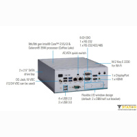 Встраиваемый безвентиляторный компьютер eBOX640-521-FL-DC, LGA1151, поддержка процессора Intel® Core™ i7/i5/i3 и Celeron®, чипсет Intel® H310, DDR4-2400 МГц, до 32 Гб, 2 x 2.5” SATA HDD, 1 х HDMI, 1 х DisplayPort, 2 х GbE LAN, 4 x USB 2.0, 2 x USB 3.0, 1 x RS-232, 1 x RS-232/422/485, GPIO, Audio, 1 x Flexible I/O, 1 x Full-size PCIе Mini (PCIe/SATA/USB), 1 x M.2 Key E 2230 (для Wi-Fi), 19 В DC(12 В, 24 В DC опция)