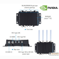 Встраиваемый безвентиляторный компьютер еBOX800-900-FL-NP, IP67, CPU Board: NVIDIA® JETSON™ TX2, CPU: HMP dual denver 2/2 MB L2 + четырехядерный ARM® A57/2 MB L2, GPU: NVIDIA® Pascal™, 256 ядра CUDA , 8ГБ 128-бит LPDDR4, 1 x M.2 2280 KEY M с PCIe 2.0 x 4 для NVMe SSD (oпция), EMMC 32 ГБ (через JETSON ™ TX2), 1 x C3 HDMI, 1 x 10/100/1000 Mbps Ethernet (M12 X-Code), 11 x Gigabit PoE (IEEE 802.3at, 30Вт) (M12 X-Code), 1 x C3 USB 2.0, 1 x Full-size PCI Express Mini Card, 1 x SIM, 802.11ac WLAN, Bluetooth, 4 x N-образных гнезда антенны с водонепроницаемым дизайном, 1 x M12 3-конт. AC, 100 ~ 240 В AC