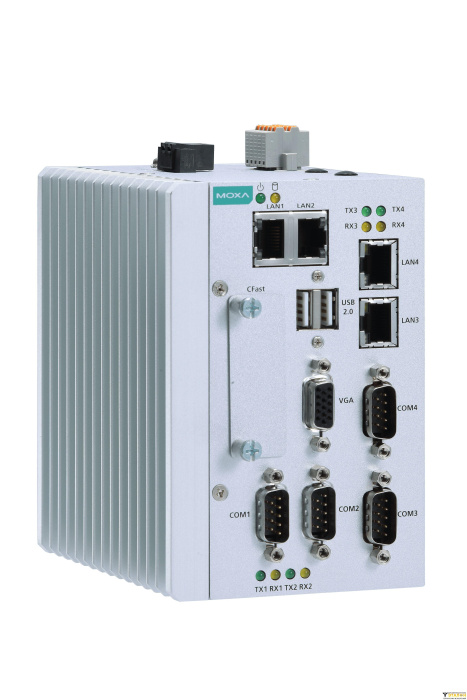 Встраиваемый компьютер с двухъядерным процессором Intel Atom E3826, с 4 Гб RAM, VGA, 2 x USB 2.0, 4 x Gigabit Ethernet, 4 x RS-232/422/485, 4 DI/4 DO, 1 слотом CFast, 1 разъемом для установки USIM, 1 слотом для установки модуля расширения