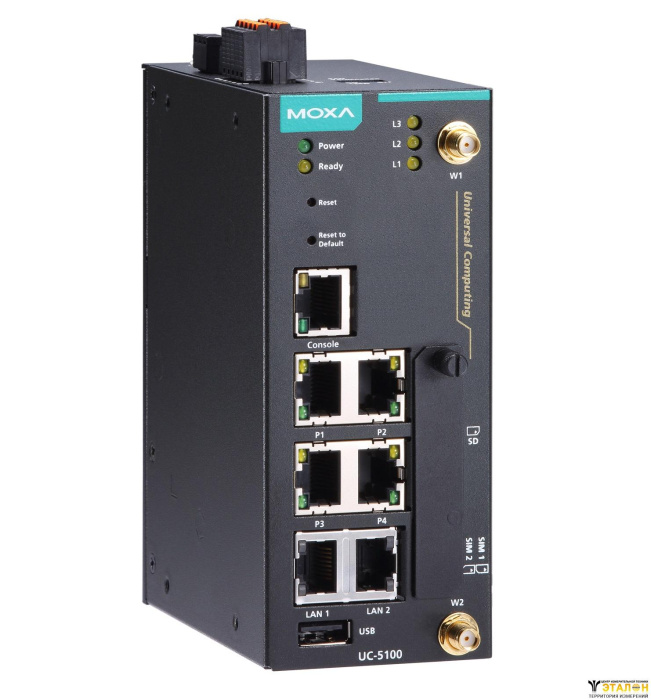 Компьютерная платформа для приложений IIoT с 2 Ethernet-портами, 4 RS-232/422/485, 4 DI, 4 DO, слотами SD и mini PCIe, 1 USB, 512 Мб RAM, 8 Гб eMMC, ОС Linux Debian 9, с диапазоном температур от -10 до 60°C
