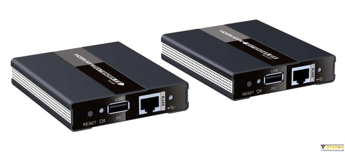 | Передатчик: | Вход: 1 x HDMI Выход: 1 х RJ45, 1 x HDMI (проходной), 1 x USB |