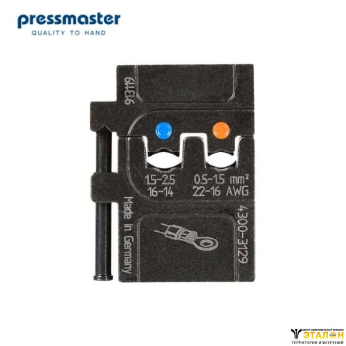 Матрица Pressmaster 4300-3129 - для опрессовки изолированных наконечников на провод 0.5 - 1.5 мм² и 1.5 - 2.5 мм². Профиль обжима: овал.