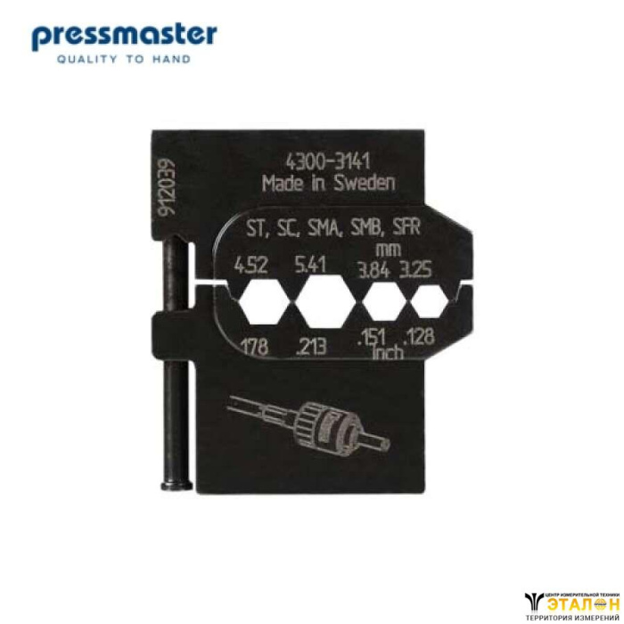 Матрица Pressmaster 4300-3141 - для опрессовки оптических коннекторов ST, SC, SMA, SMB, SFR. Профиль обжима - шестигранник: 3.25 мм, 3.84 мм, 4.52 мм, 5.41 мм.