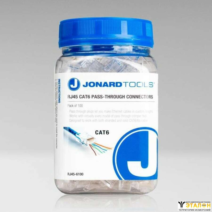 Сквозные коннекторы Jonard Tools RJ45 (CAT6), 100 шт в пластиковом контейнере.