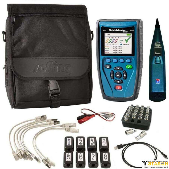 Softing CableMaster 600- профессиональный тестер витой пары, телефонного и коаксиального кабеля с возможностью измерения длины линии, расстояния до короткого замыкания и определения наличия Ethernet соединения и параметров PoE.