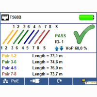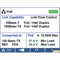 | Power over Ethernet | Тестирование PoE, стандарт IEEE 802.3af и IEEE 802.3at, PoE Plus <24 Вт Тесты для классов и нагрузок кабельных линий до 25.5 Вт Определение режима A или B в классе 4 |