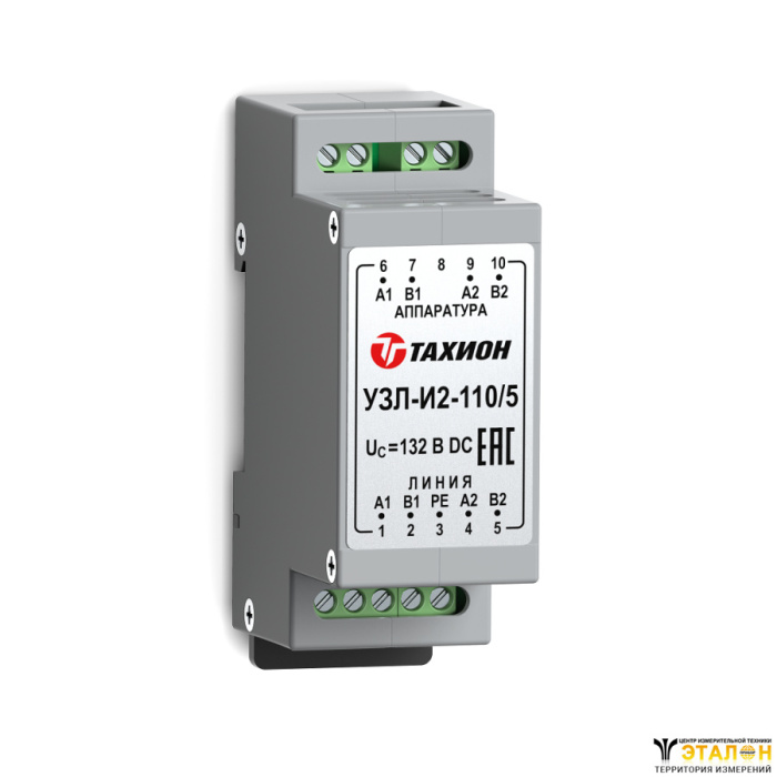 УЗЛ-И2-110/5 по техническим и эксплуатационным характеристикам удовлетворяет требованиям МЭК 61643-21, ГОСТ IEC 61000-4-5. Степень защиты IP20 в соответствии с ГОСТ 14254. Конструктивно устройство выполнено в пластмассовом корпусе с креплением на 35мм DIN-рейку. Устройство выпускается по техническим условиям ТУ 26.30.50-077-31006686-2017.