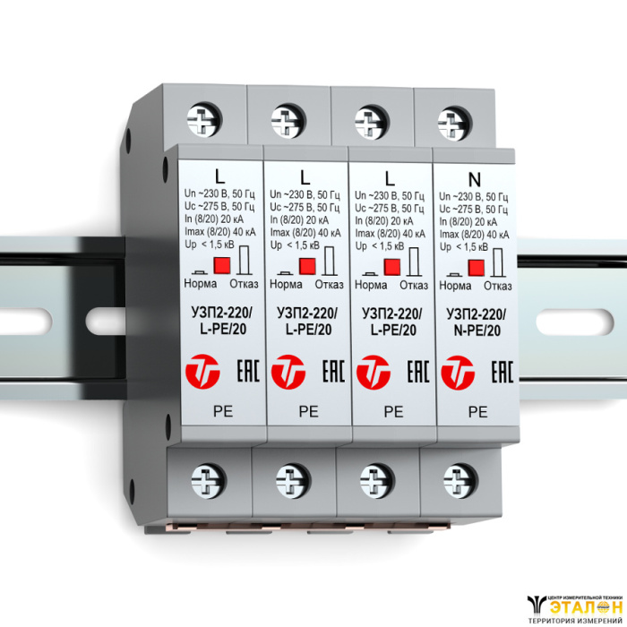 УЗП2-220К/3LN-PE/20 – четырехполюсное устройство защиты ограничительного типа класса испытаний II, по техническим и эксплуатационным характеристикам удовлетворяющее требованиям ГОСТ IEC 61643-11, ГОСТ 30011.1, ГОСТ Р 50571-4-44, ГОСТ Р 50571.5.53.