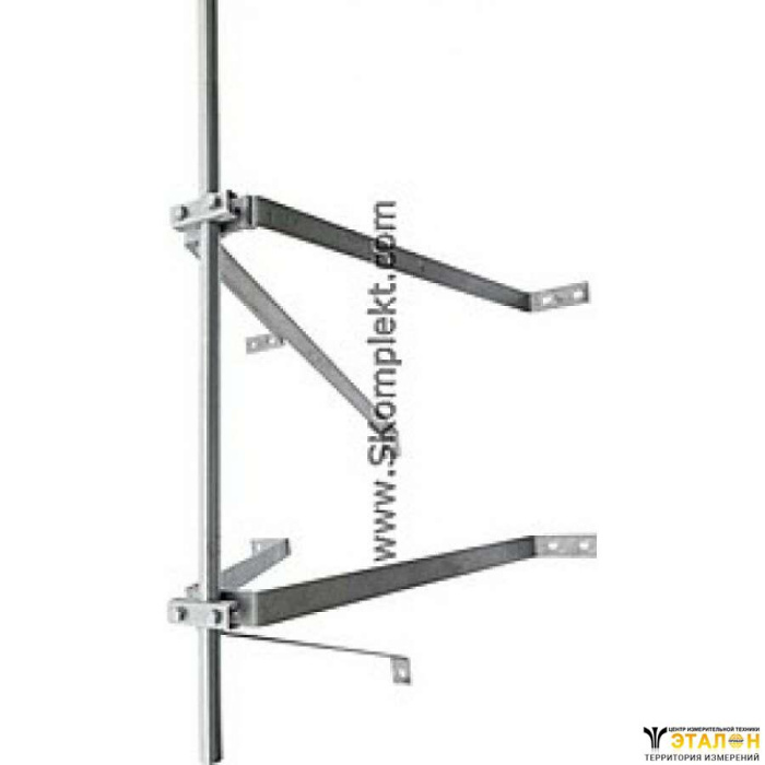Крепление (поставляется набор из двух единиц) позволяет установить стержневой молниеприёмник (мачту) ZZ-201-004 на стене / фасаде здания.