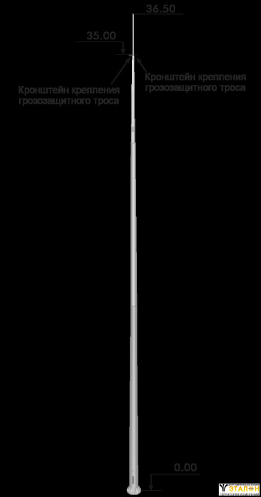 Опора выполнена из стали оцинкованной, 8-гранная, коническая. Ствол опоры в нижней части имеет фланец для крепления с фундаментом. В нижней части опора оснащена люком, который обеспечивает доступ к месту подключения заземляющего устройства. Люк закрывается крышкой, исключающей попадание атмосферных осадков и несанкционированное проникновение.