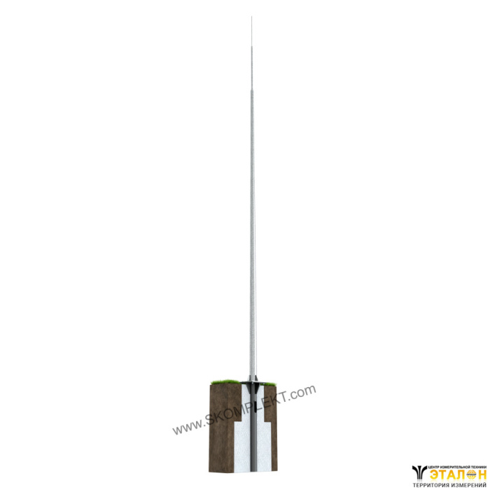 Вертикальный молниеприемник (молниеотвод) - металлическая конструкция, непосредственно принимающая на себя удар молнии, отводя его при этом от сооружений, расположенных в зоне защиты. Вертикальный молниеприемник - мачта, выполненная из оцинкованной стали и состоящая из молниеприемной надставки, ствола-опоры и закладной детали фундамента. Мачта предназначена для монтажа в грунт с применением бетонного фундамента.