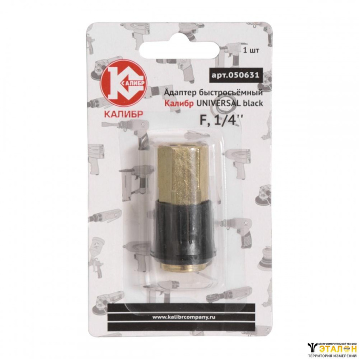 Адаптер быстросъёмный Калибр UNIVERSAL black F, 1/4''. Предназначен для соединения участков пневмомагистрали во время монтажа.