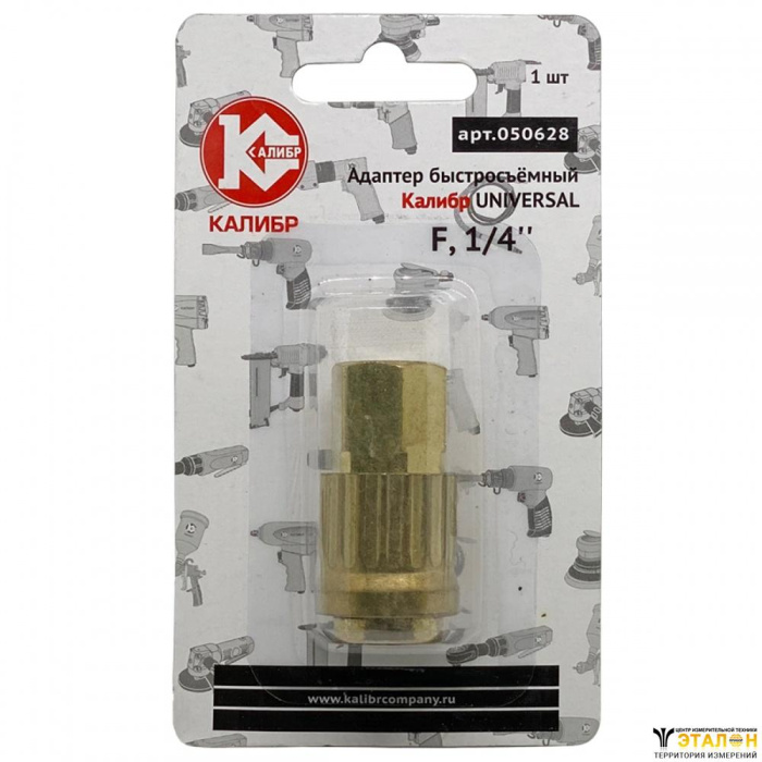 Адаптер быстросъёмный Калибр UNIVERSAL F, 1/4''. Предназначен для соединения участков пневмомагистрали во время монтажа.
