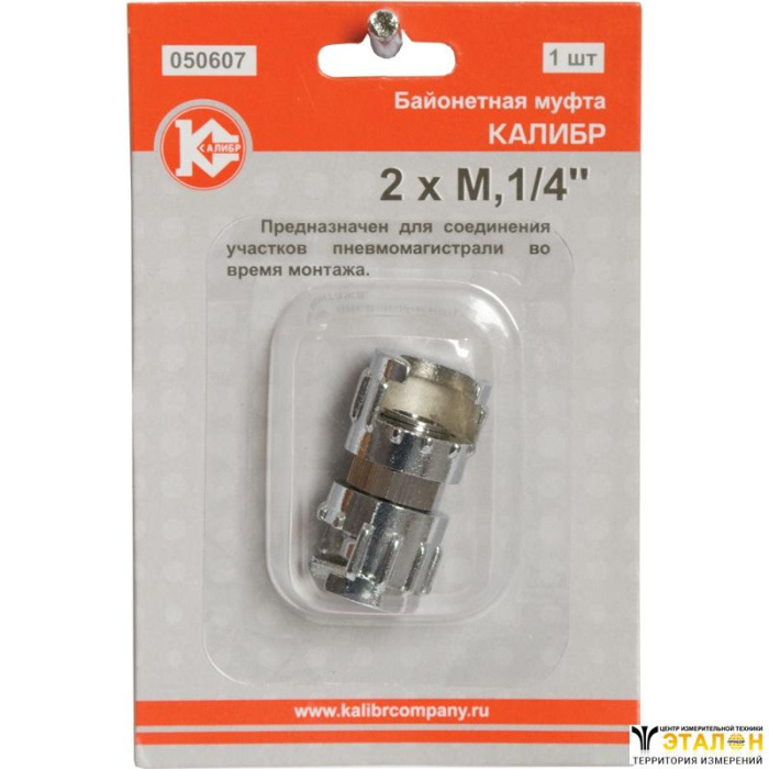 Байонетная муфта Калибр 2 х М,1/4''. Предназначена для соединения участков пневмомагистрали во время монтажа. Обеспечивает переход с внутренней резьбы на наружную (. Для байонетного соединения, есть две соответствующих гайки.