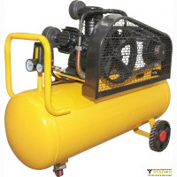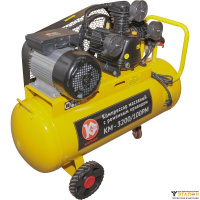 Компрессор масляный с ремённым приводом Калибр КМ-3200/100РМ предназначен для получения сжатого воздуха с последующей подачей потока сжатого воздуха источнику потребления. Использование компрессора позволяет значительно сэкономить электроэнергию, механизировать труд и повысить качество работ, за счёт подключаемого пневмоинструмента. Компрессор не предназначен для промышленного использования и строительных работ. Однофазный асинхронный двигатель приводит в действие, ремённой передачей, поршни трёхцилиндрового компрессора. Сжатый воздух из цилиндров подаётся в ресивер, где достигает рабочего давления – 8 бар. Реле давления отключает двигатель при достижении рабочего давления в ресивере. К выходному быстроразъёмному штуцеру подключается пневмоинструмент. При снижении давления в ресивере ниже 6 бар, реле давления включает двигатель компрессора. Давление в ресивере отображается на манометре. Давление в выходном штуцере регулируется рукояткой редукционного клапана. Компрессор оснащён предохранительным клапаном для ограничения максимального давления в ресивере, если не сработало РД. Компрессор оснащён автоматической системой защиты по току.