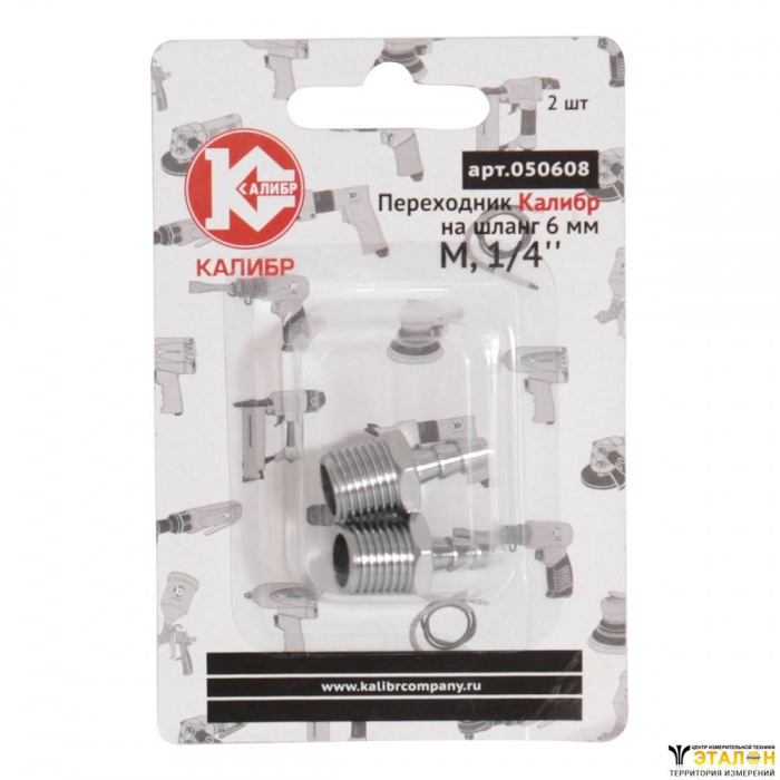Переходник Калибр на шланг 6 мм, M, 1/4''. Предназначен для соединения участков пневмомагистрали во время монтажа.
