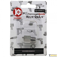 Переходник Калибр M 1/4'' x F 1/4''. Предназначен для соединения участков пневмомагистрали во время монтажа.
