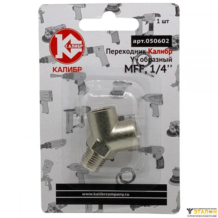 Переходник Y-образный Калибр MFF, 1/4''. Предназначен для соединения участков пневмомагистрали во время монтажа.