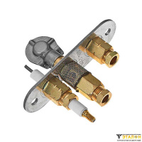 В сборе 2 факела, без электрода розжига, инжектор 0,41 мм (100-001), подсоединение газа 6 мм, имеет отверстие для подсоединения миливольтового генератора.