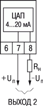 И | цифроаналоговый преобразователь «параметр–ток 4…20 мА» | Постоянный ток 4...20 мА на внешней нагрузке не более 1 кОм, напряжение питания 12...30 В рассчитывается в зависимости от сопротивления нагрузки | ||