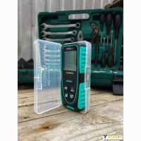 Эргономичный дизайн корпуса для удобства измерений. Защитные протекторные накладки расположены в верхней и нижней части прибора. Дальномер удобно лежит в руке. При ударах они защитят корпус от повреждений. Мембранные кнопки управления не боятся пыли и влаги.